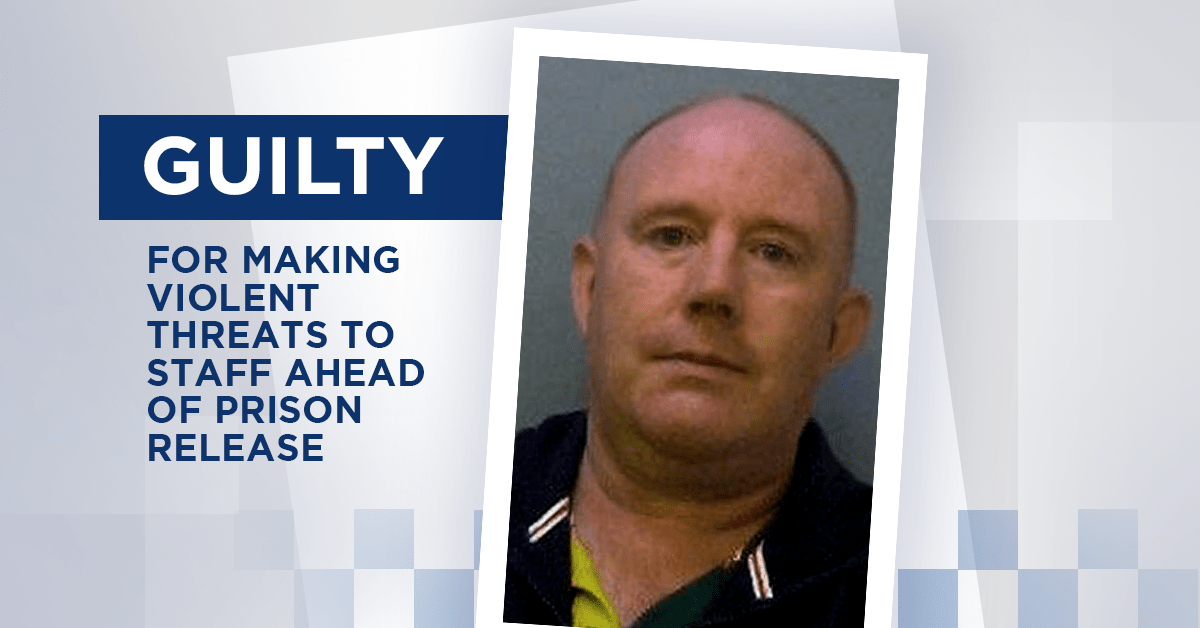 Nicholas Brock, 57, has been found guilty of making threats to kill prison and probation staff ahead of his release from prison, where he was serving a sentence for possession of terrorist materials.